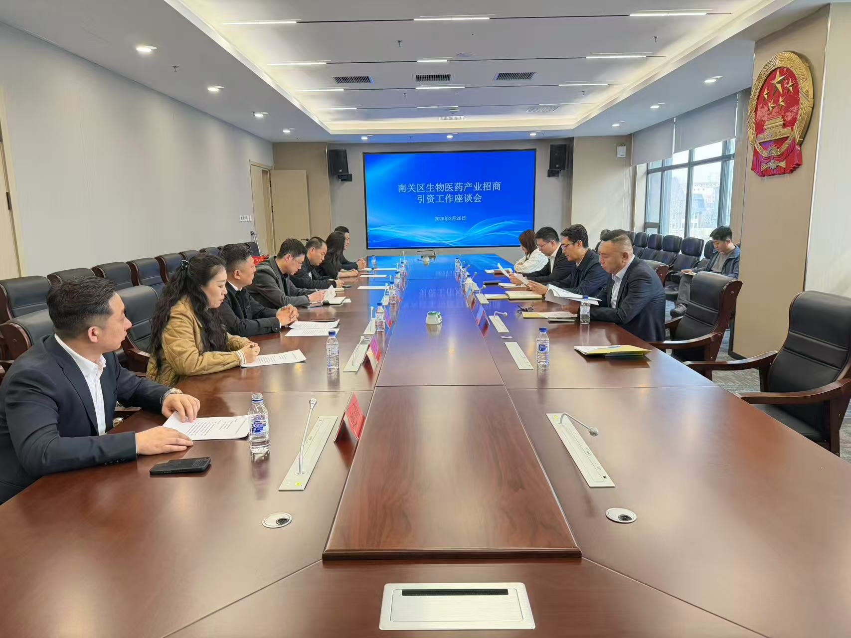 2026年3月26日上午,为扎实做好我区生物医药产业招商引资工作,精准摸清企业发展需求,搭建高效政企沟通对接平台,南关区生物医药产业专班召开招商引资工作会议。会议围绕产业招商、政企合作、项目落地等核心内容展开务实交流。南关区副区长吴永进,区工商联秘书长杜宵,区卫生健康局副局长赵茂鑫参加会议。