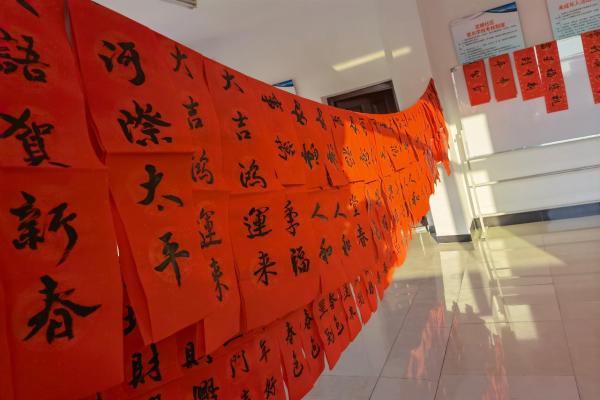 街道工作人员将这些春联作品摆放成红彤彤的春联墙,映衬出浓浓的新年气息,也寄托了大家辞旧迎新、接福纳祥的美好愿望,为即将来临的春节增添了浓浓的喜庆氛围。