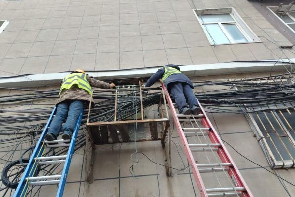 在此次整治行动中,工作人员对存在问题的老旧小区进行了细致排查,详尽记录了问题情况,并及时上报。对此,街道高度重视,迅速调配专业人员实地施工。施工中,两名工作人员站在扶梯上,对空中电缆线进行精准分段、分类捆扎,废弃的线缆和散乱的线路也得到了妥善的剪除。经过他们的巧手梳理,曾经盘根错节、犹如蜘蛛网的电线网,被整治得井井有条,组成了美观有序的缆线单元,既美化了城市景观,也在很大程度上消除了潜在的安全隐患。