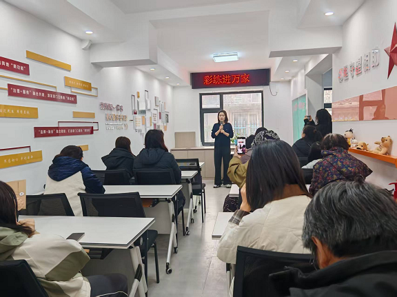 随后,李抑嫱主任为活动致辞。她详细阐述了“彩练进万家”社区联络点的设立意义与服务价值,让在场居民对联络点的功能与未来合作方向有了更清晰的认知,进一步激发了大家的期待。