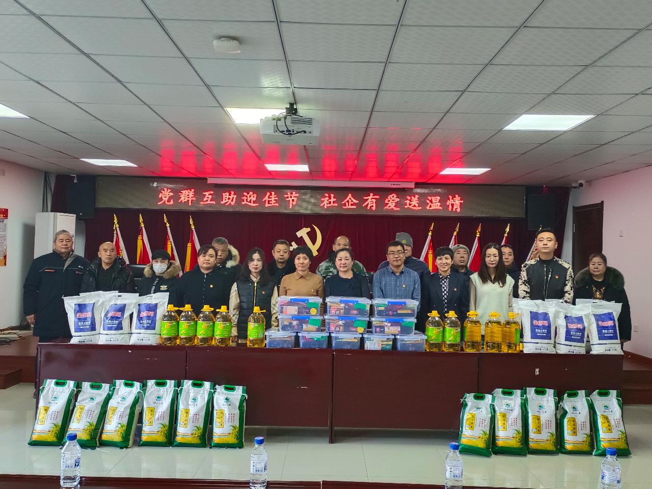 辞旧迎新启新程,温情关爱暖人心。12月31日,富裕街道中海南溪社区新时代文明实践站内暖意融融,富裕街道党工委书记乔志新、街道办事处副主任张景良携社区党委联合长春城投生态治理建设投资有限公司临时党支部党员,在此开展“党群互助迎佳节 社企有爱送温情”新年慰问活动,为辖区15户低保户、特困家庭集中送上大米、白面、豆油及调料礼盒等生活物资,践行党群同心、社企联动的服务行动,为困难群众铺就温暖过年路。