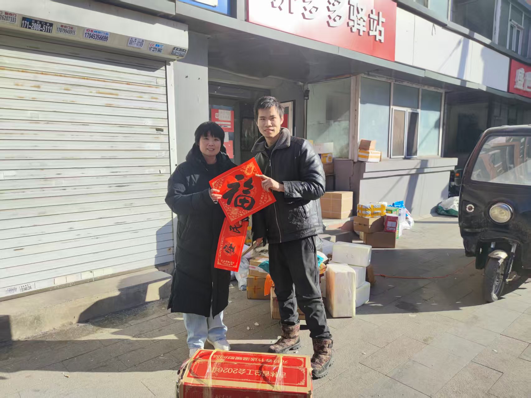 当天上午,社区书记带领志愿者队伍,带着沉甸甸的爱心物资来到快递驿站,为他们送上生活物资和诚挚问候,并与新就业群体亲切交谈,详细询问他们的日常工作节奏、生活状况及实际需求,叮嘱他们在奔波忙碌的同时,注意劳逸结合、做好防寒保暖,时刻将自身安全放在首位。随后,志愿者送上由社区书法爱好者亲手书写的一副春联和“福”字,红纸金墨间洋溢着浓浓的年味与祝福。受访的快递员纷纷表示,非常感谢社区的关心和惦念,今后会继续以饱满的热情投入工作,更好地为社区居民服务,同时也会积极参与社区的各项志愿服务,与社区携手共建美好家园。
