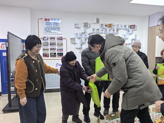 物资发放环节,慰问组人员与社区工作人员分工协作,将一份份装满米面油的物资递到群众手中。接过沉甸甸的生活物资,群众们脸上洋溢着感动的笑容,不停地向慰问组表达感谢,“太感谢了,这些物资都是日常生活用得上的,有了它们,可以过个好年了,真是太贴心了!”一位领取物资的阿姨激动地说,现场氛围温馨而热烈,一句句问候、一声声感谢,交织成温暖的画面。