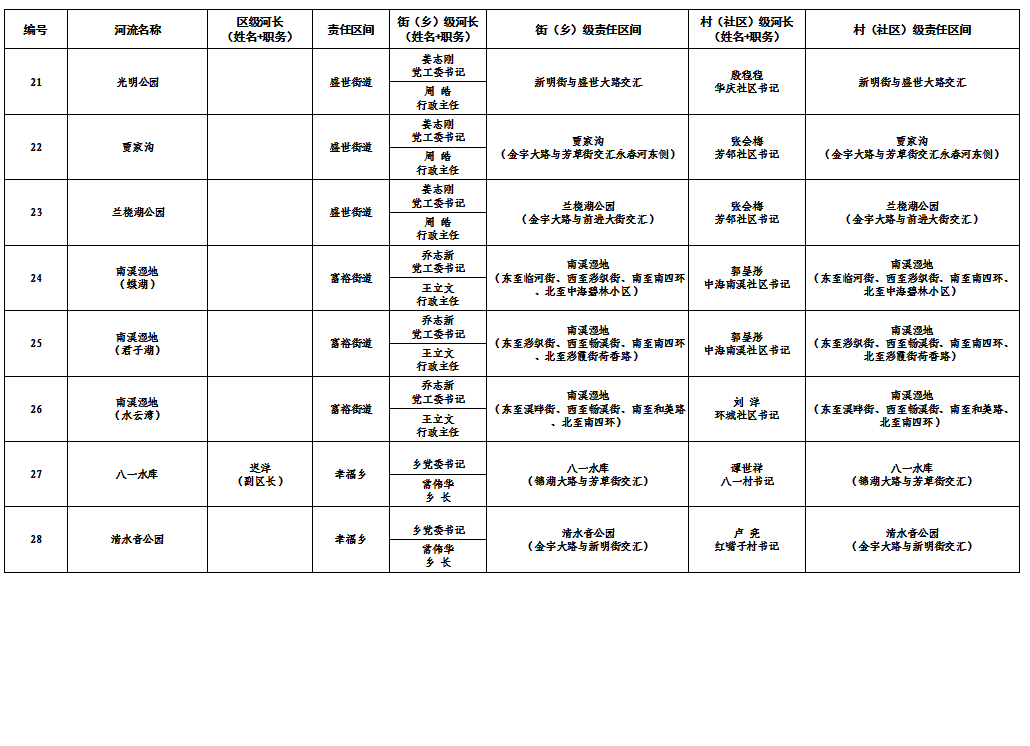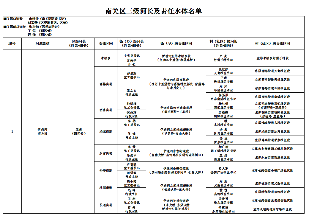 南关区三级河长及责任水体名单
